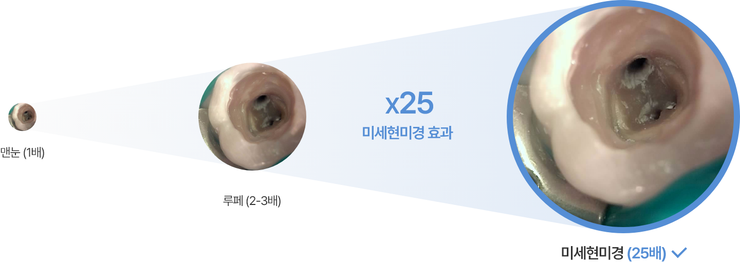 25배 확대를 통해 육안으로 보이지 않는 곳까지 정밀하게 진단하고 안전하게 치료합니다.