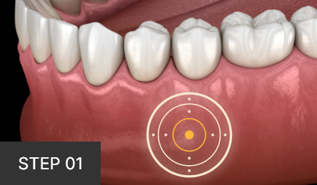 잇몸뼈가 부족한 경우 추가 골 이식재로 충전합니다.