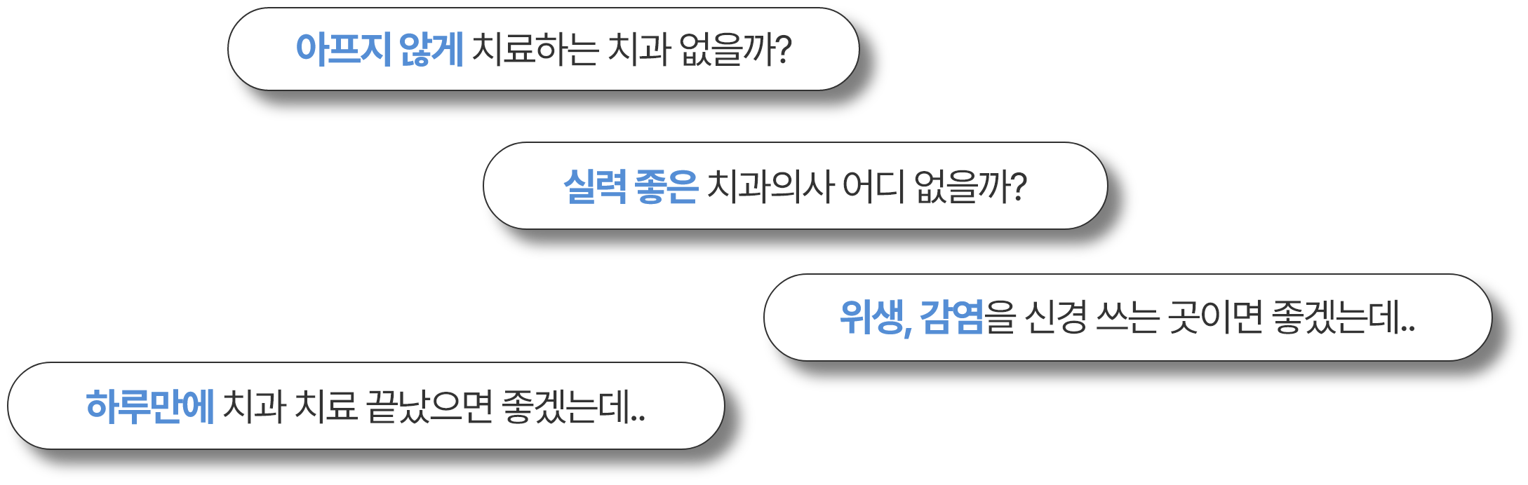 서울스마트치과는 환자분들이 고민하시는 4가지를 중점적으로 해소해