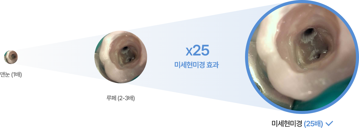 25배 확대를 통해 육안으로 보이지 않는 곳까지 정밀하게 진단하고 안전하게 치료합니다.