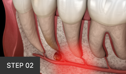 감염된 치아 뿌리의 끝부분을 잘라내고 소독합니다.