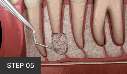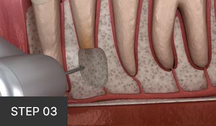 잇몸뼈가 부족한 경우 추가 골 이식재로 충전합니다.